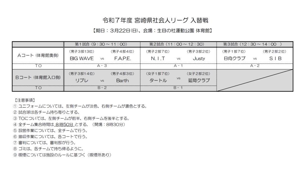 令和7年度 宮崎県社会人バスケットボール連盟 リーグ入替戦